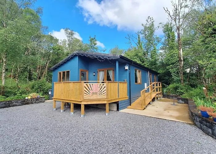 The Blue House - Romantic Mountain Cabin Donegal Town med 1 sovrum erbjuder närhet till turistattraktioner, till exempel Famine Graveyard, som ligger cirka 7 km bort. Villan med 1 badrum har en parkering och en terrass med utsikt över floden.